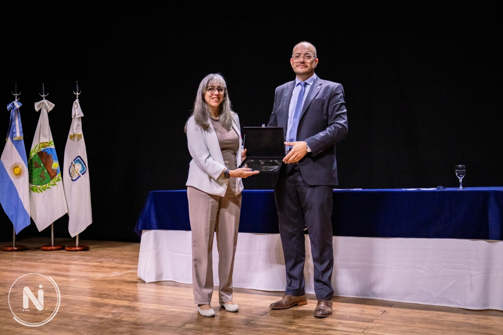 Asimismo, destacó que en la Doctora encontramos esa síntesis entre la excelencia científica y el compromiso social que inspira a nuestras y nuestros estudiantes, investigadoras e investigadores. Raúl Gil acentuó que al conferirle este título, la Universidad Nacional de San Luis se honra a sí misma, porque reconocer su trayectoria es también reafirmar nuestros propios valores: la defensa de la ciencia pública, la igualdad de oportunidades, la vocación de servir a nuestro pueblo desde el saber. «Reciba este reconocimiento como símbolo de nuestra admiración, de nuestro afecto y de nuestro compromiso compartido con una ciencia argentina libre, inclusiva y transformadora», le expresó a la investigadora.
