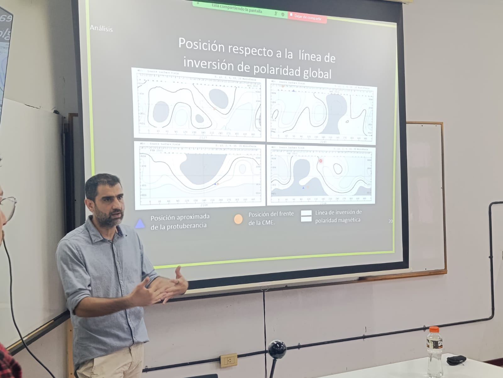 El físico estudió en su tesis doctoral el comportamiento de las ECM Streamer Blowout. «Estas eyecciones coronales de masa son lentas, y en la fotosfera no dejan características muy visibles. Por lo tanto, cuando están dirigidas a la Tierra, no suelen ser detectadas. Pero por más que sean eventos lentos con poca energía, cuando están dirigidos a la Tierra, pueden generar tormentas geomagnéticas», explicó.