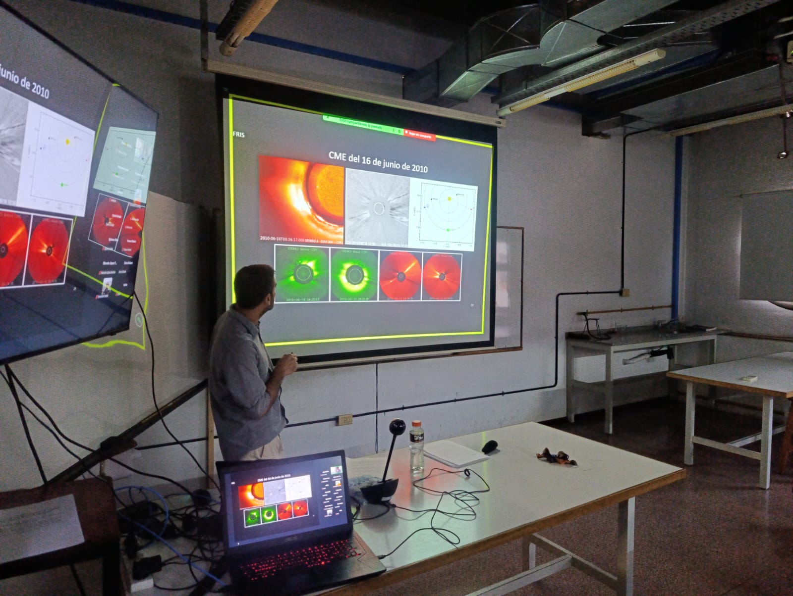 Di Lorenzo destacó que, a pesar de su relevancia, la investigación de la física solar no tiene un gran camino recorrido. «Este es un campo nuevo. Las primeras observaciones satelitales del Sol se hicieron en los 70; antes todo el estudio era teórico. Recién se pudieron sacar las primeras fotografías de las Eyecciones Coronales de Masa en los años 70 con un satélite», remarcó y destacó que en la década de los 90 sí hubo un salto en la investigación gracias al envío de sondas especiales.
