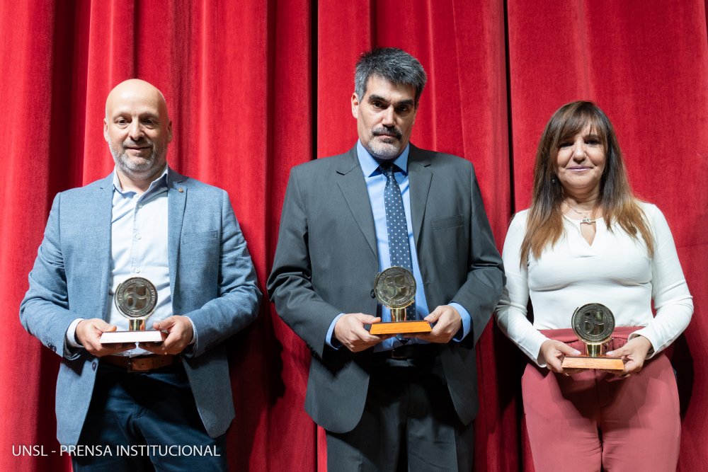 Durante la entrega de reconocimientos, dos (2) instituciones distinguidas entregaron un presente al Rector de la UNSL en homenaje al nuevo aniversario que cumplió la Casa de Estudios.