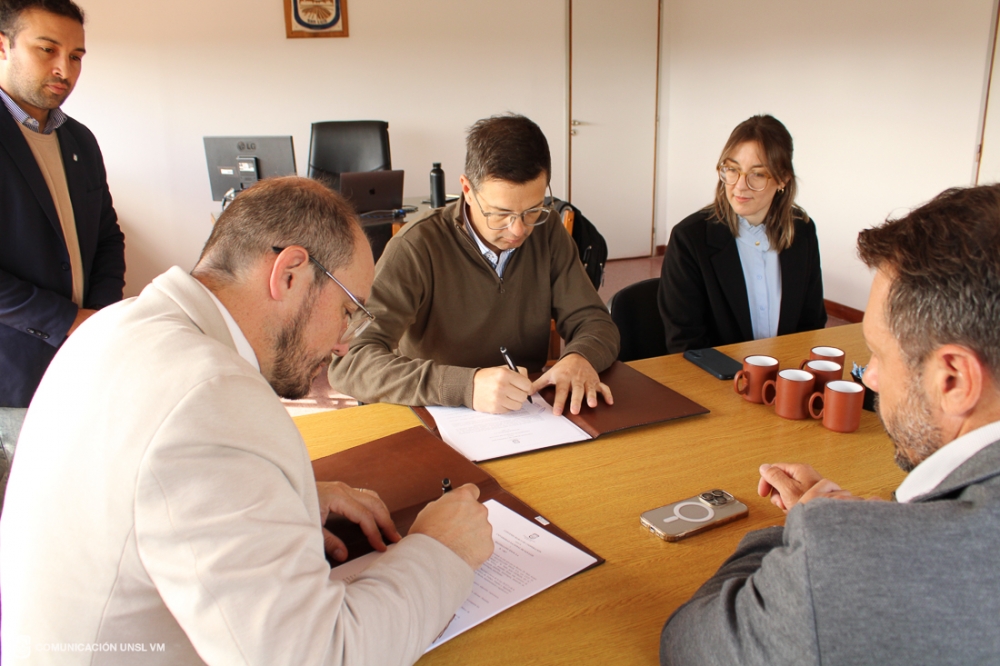 Del encuentro, participaron el rector de la UNSL, Dr. Raúl Andrés Gil; el decano de la FICA, Dr. Ing. Federico Martín Serra; el gerente apoderado de la empresa, Ing. Pablo Ariel Giorgis; el vicedecano y secretario de Extensión, Mgtr. Guillermo Ariel Martínez; y la coordinadora de Extensión, Vinculación y Transferencia, Lic. Mariela Soledad Rosa.