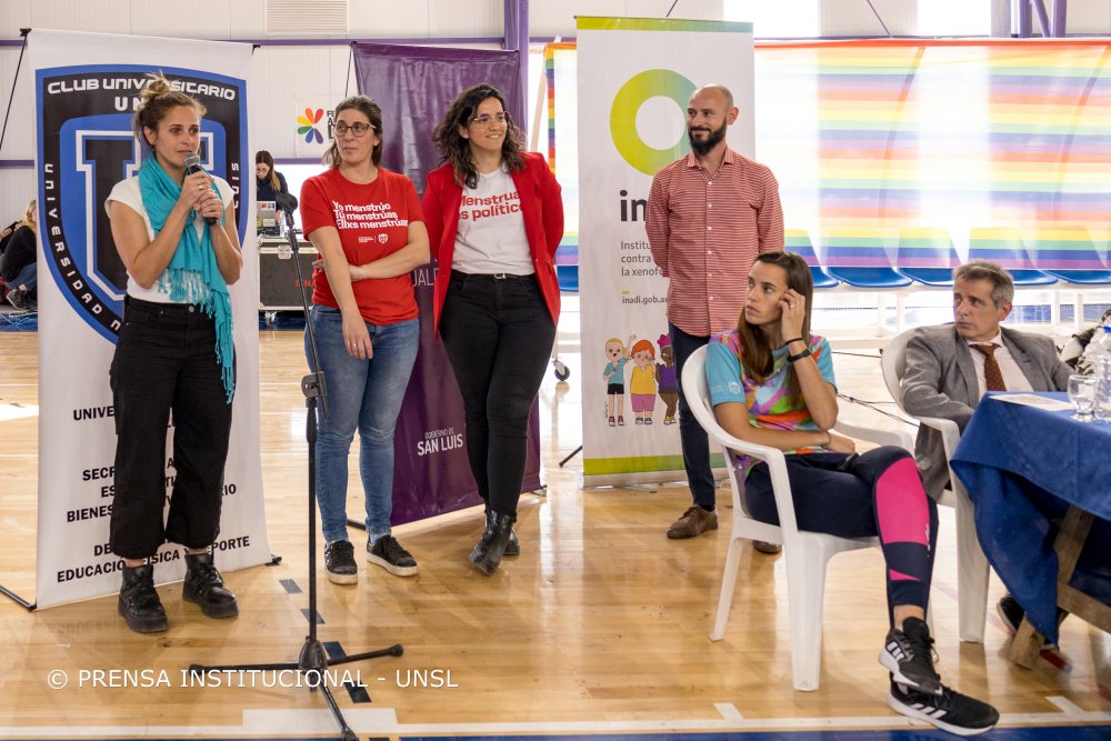 El evento comenzó con la conformación del panel de autoridades, integrado por la delegada provincial del INADI, Gema Rosales; el vicerrector de la UNSL, Mgtr. Héctor Flores; la jefa de Gabinete del INADI, Lorena González; la senadora Nacional María Eugenia Catalfamo; la secretaria de la Mujer, Diversidad e Igualdad, Ayelén Mazzina; la jefa del Subprograma Integración Social de la Secretaría de Deportes, Mariana Luberriaga y la coordinadora provincial de la secretaría de Deporte de la Federación Argentina LGBT, María José Ochoa.