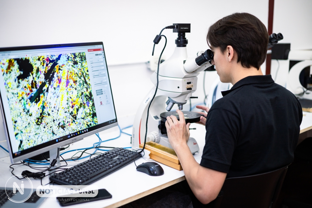Desde la fisicoquímica, Nicolás remarcó que se pudo determinar que el mineral más importante, perteneciente a la familia de los feldespatos, presenta un estado estructural excepcionalmente poco frecuente y es la primera vez que se registra en la provincia de San Luis.
