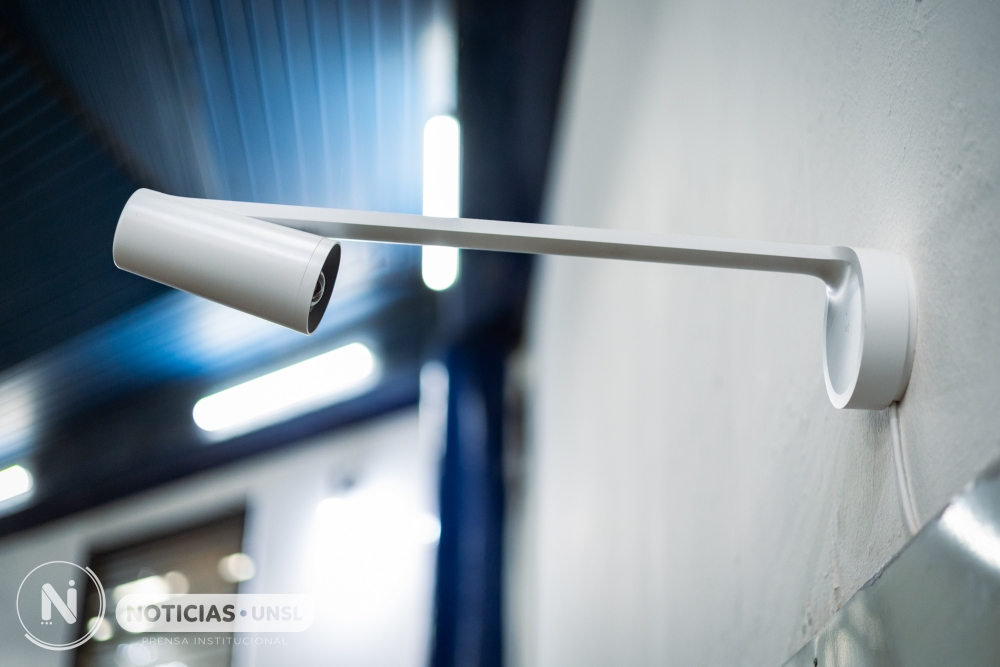 La Universidad incorporó un moderno sistema de equipamiento audiovisual en los tres (3) anfiteatros, optimizando su funcionamiento como aulas híbridas. El sistema se basa en la incorporación de dos (2) cámaras de alta calidad que permiten transmitir de manera eficiente las clases en tiempo real: cámara principal con seguimiento automático ubicada al frente del aula. La misma está diseñada para seguir al/la docente de manera inteligente. Capta sus movimientos, realiza acercamientos (zoom) automáticos cuando se desplaza hacia el pizarrón o hacia la cámara, y permite una experiencia cercana para quienes participan de forma remota. Esta cámara integra también un micrófono incorporado que toma claramente la voz del/la docente y las intervenciones dentro del aula.