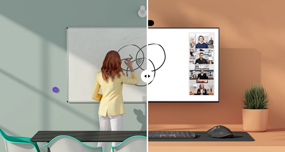 Además, las aulas cuentan con proyección en pantalla grande, conectada directamente a la computadora del/la docente, para que aparezcan los/las estudiantes que están de manera virtual. El sistema también incorpora parlantes y micrófonos adicionales, que aseguran una experiencia auditiva clara en ambas modalidades.
