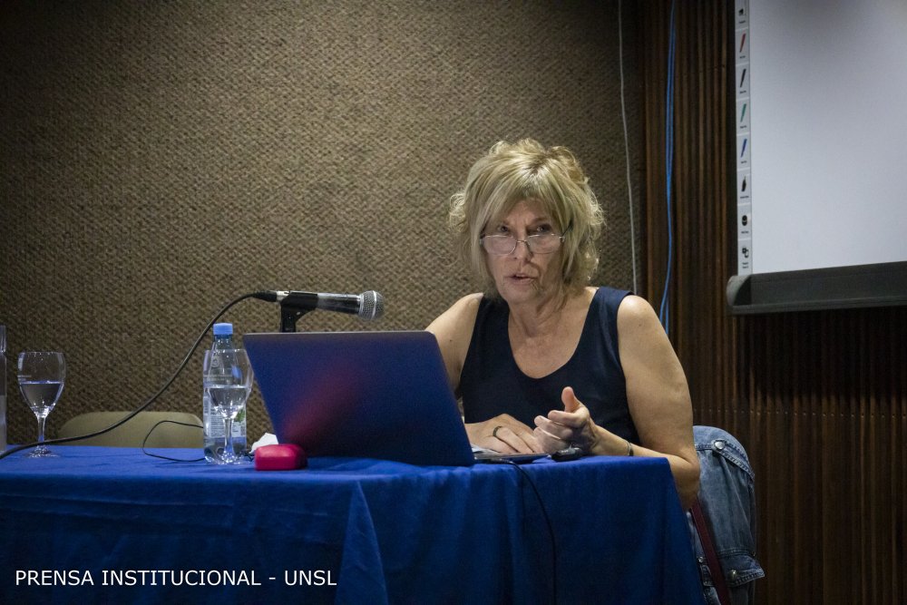 La disertante expresó que: «cualquier situación en la que se celebre una reunión, un encuentro o una convocatoria a docentes de la universidad, siempre es auspicioso y algo productivo. Hay que celebrar la posibilidad de encontrarse. En mi caso, especialmente con esta Universidad, tengo un lazo afectivo porque la historia me fue llevando a encontrarme con colegas y a realizar actividades en conjunto, así que venir acá siempre es encontrarme con gente querida».