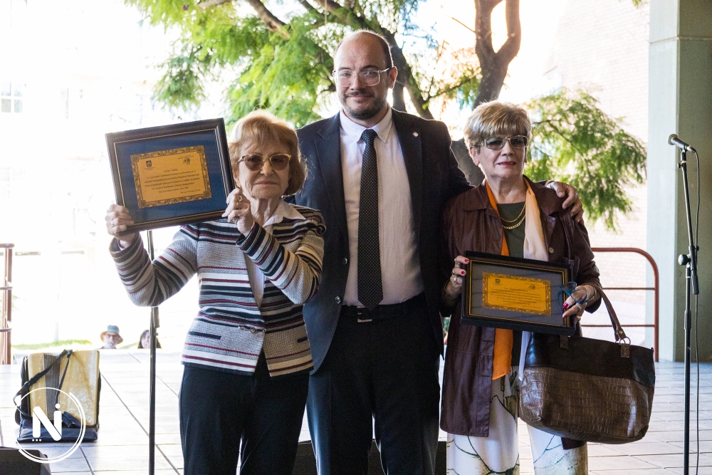 Luego, la Asamblea Permanente por los Derechos Humanos (APDH) llevó a cabo la entrega de placas recordatorias en reconocimiento a la historia militante de Lilian Videla y María Esther Picco. Estas placas serán incorporadas a la Galería de la Memoria, espacio institucional que se encuentra actualmente en proceso de puesta en valor y que será próximamente inaugurado.