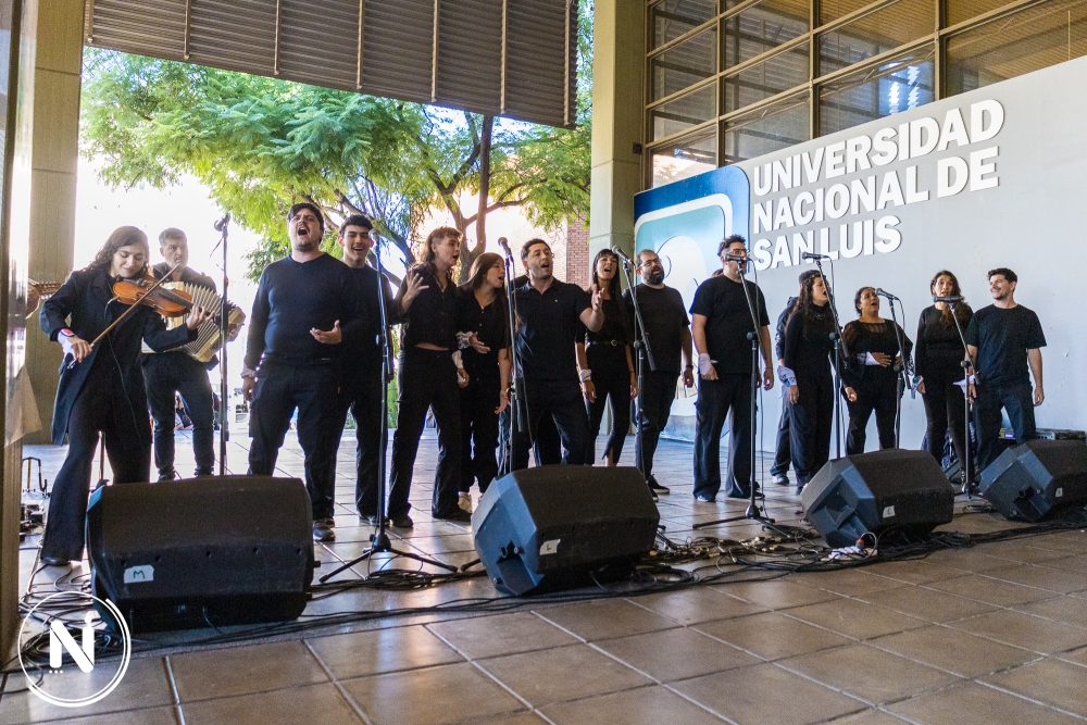 A modo de cierre, se realizó la interpretación de El derecho a vivir en paz, a cargo de artistas de la cultura de la ciudad de San Luis, dirigida por trabajadores de la cultura de la Universidad, bajo la responsabilidad de la Dirección de Actividades Culturales de la UNSL.