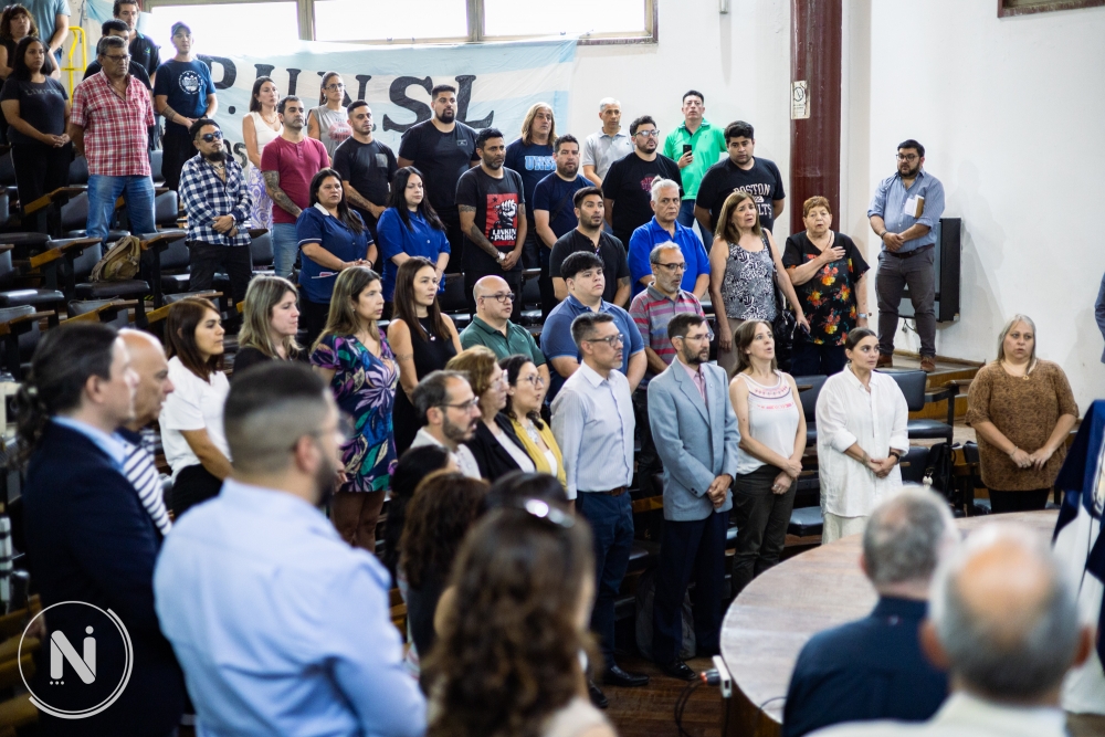 Por su parte, el secretario General de la APUNSL, Tec. Omar Quinteros, luego de desearle feliz día a los y las trabajadores/as nodocentes, recordó la memoria de Alberto Geraiges. «Viendo la calidez, el compromiso, la trayectoria de Carina, yo creo que era justo que una compañera de Mercedes también estuviera presente hoy», dijo y agregó: «te lo merecés por tu trayectoria, tu compromiso, por tus ganas que le ponés a la Institución, y yo creo que todas las cosas tienen que tener sentimientos y pasión, y vos sos una apasionada de la camiseta del nodocente».