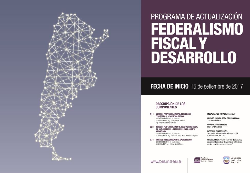 Tendrá un crédito horario de 120 horas teóricas presenciales organizado en tres cursos de perfeccionamiento. Este programa es organnizado por el proyecto de investigación PROICO 1507-16 “Estructura y marco institucional del desarrollo en la Provincia de San Luis. Un enfoque sistémico”, de la Facultad de Ciencias Económicas, Jurídicas y Sociales (FCEJS). El coordinador general del programa es el Mg. Martín Gil.